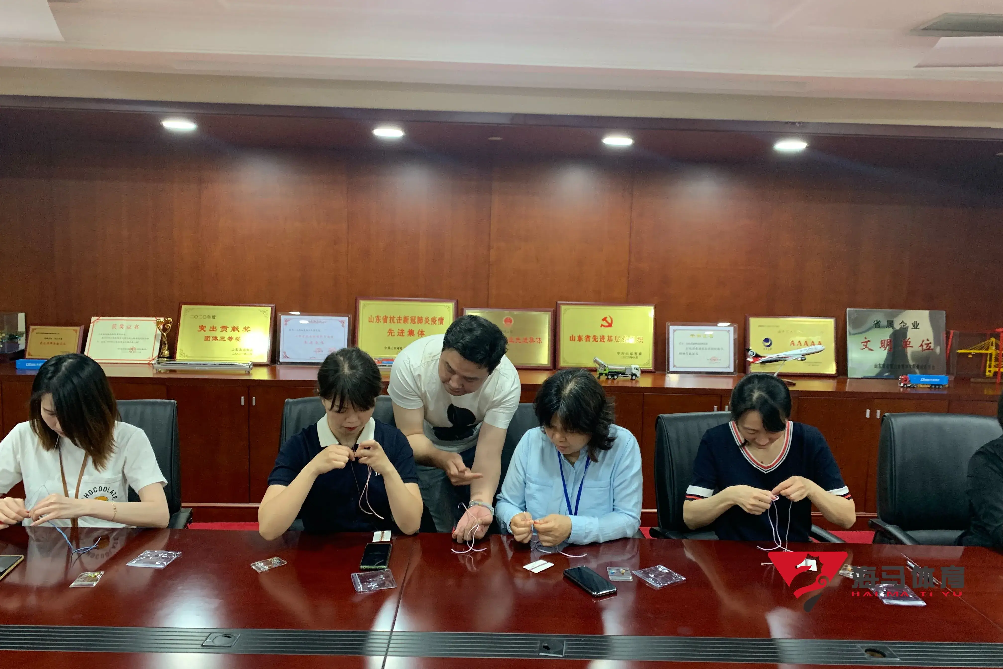 制作前,万向娱乐的手工老师首先介绍了端午的习俗以及端午节制作香囊与五彩绳的来历,让大家在活动前了解端午的民俗文化,手工老师将精心准备的有着美好寓意的五色彩绳、色彩绚丽的香包袋以及清香的艾草薰衣草,送到职员手中,携手制作香包和五彩绳。